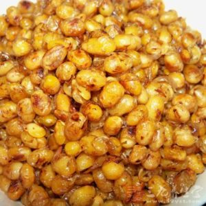 7.、取適量淀粉均勻的撒在裹滿糖漿的黃豆上。