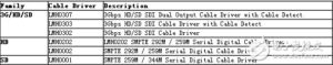 SDI 線纜驅(qū)動器用來加強(qiáng)對線纜的驅(qū)動能力,提供標(biāo)準(zhǔn)的800mV 峰峰值輸出電壓擺幅,沒有預(yù)加重和去加重功能。TI 的線纜驅(qū)動器系列如表4 所示。