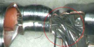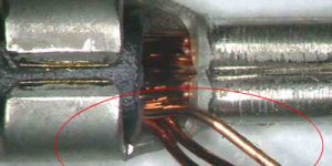 不良的原因:在壓接過程中,半成品銅絲散亂,或者壓接方法不當。