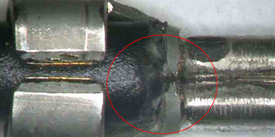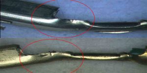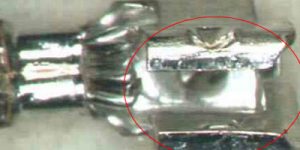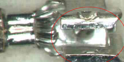 不良的原因:模具調試時,端子不到位,或者壓接刀片損傷造成的。