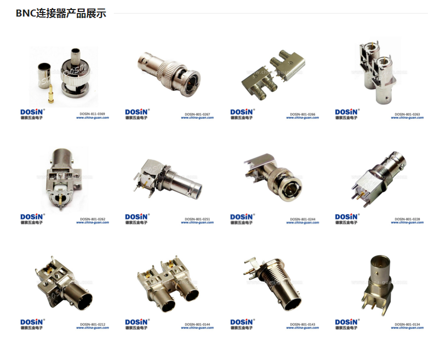 您可知bnc連接器是什么樣的?在了解這個問題之前,您應該知道什么是bnc連接器。bnc連接器的英文全稱是Bayonet Neill-Concelman,翻譯過來是尼爾-康塞曼卡口的意思,屬于一種常見的射頻同軸電纜終結器。bnc連接器的型號有很多種,每一種的外形都一些細微的差別,德索五金電子的bnc連接器產(chǎn)品主要如下: