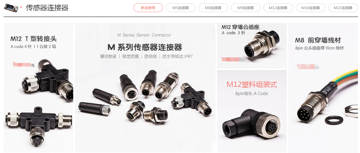 【產(chǎn)品芯數(shù)】 M12連接器公頭為180度直型。針芯數(shù)為3針、4針、5針、6針、7針、8針。
