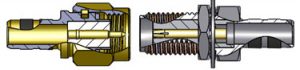 性別化連接器可以是共面的(圖3)或非共面的(圖4),并且通常在內(nèi)導(dǎo)體和外導(dǎo)體中都是性別匹配的,如類型N和SMA連接器。對(duì)于共面連接器,中心導(dǎo)體和外部導(dǎo)體匹配在同一平面內(nèi)(如SMA連接器)。對(duì)于非共面連接器,中心導(dǎo)體與外部導(dǎo)體不匹配(例如N型,BNC和TNC連接器)。同軸連接器可采用空氣或固體電介質(zhì)設(shè)計(jì),聚四氟乙烯(PTFE),Delrin?或熱塑性塑料可用作常見(jiàn)的固體介電材料。空氣作為最佳電介質(zhì),然后是PTFE,然后是Delrin。具有固體電介質(zhì)的連接器可以齊平或具有重疊配置,75ΩBNC和50ΩSMA和SSMA連接器可以是齊平連接器配置的示例。