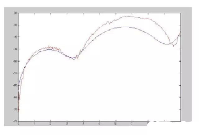 我們使用Matlab將測量的結果與模擬的結果進行兩者間的對照,取樣的點數為201點,頻率的范圍為50MHz到10GHz。由圖六可以看到,整體的S11參數大致上與測量結果吻合,但是在頻率5GHz之后,數值部份已經漸漸無法相當吻合,我想這可以歸究于S11參數是反射系數的關系,而整體的S11參數是很不好測量的,因為其數值都是在-30dB到-60dB之間,是相當小的值,因此如果有不小心動到測量的線路,或是線路有抖動的問題,都會造成量測結果的不準確,而模擬的參數對于實際上所測量的結果,通常也都會有一定程度上的誤差,因此只能做到盡量與測量結果吻合。