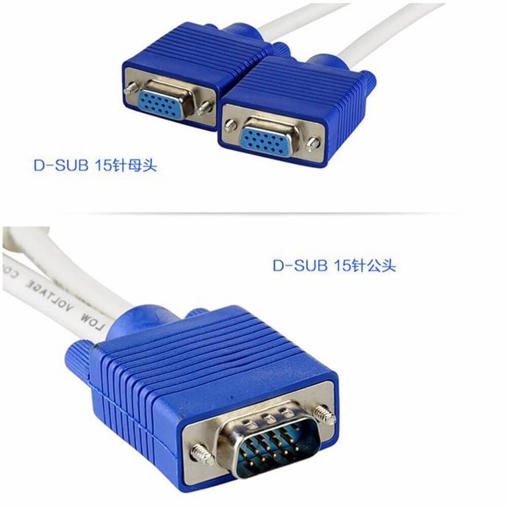 VGA接口15芯公頭轉(zhuǎn)母頭一拖二D-Sub連接器直式15芯連接線(xiàn)