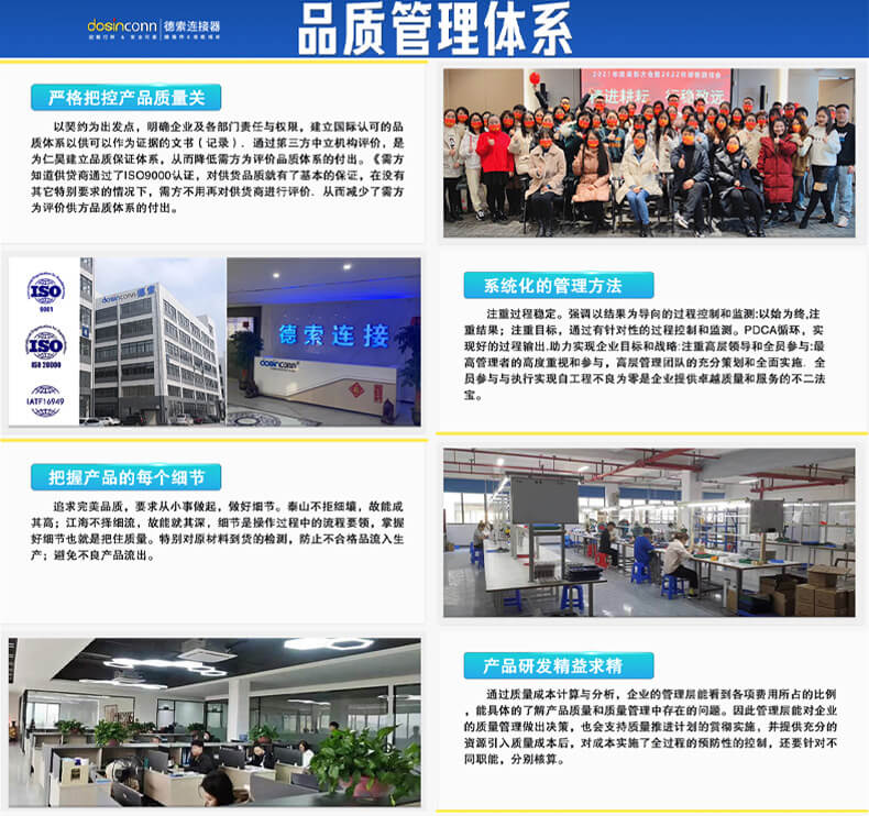 讀完上文之后,您對(duì)于“定制連接器模具用什么鋼材比較好”應(yīng)該非常清楚了,更多“定制連接器模具用什么鋼材比較好”相關(guān)的技術(shù)資料,德索運(yùn)營(yíng)團(tuán)隊(duì)會(huì)繼續(xù)編輯整理發(fā)布在資訊頻道與您分享。?東莞市德索精密工業(yè)有限公司是一家專業(yè)精密連接器模具生產(chǎn)制造企業(yè),專業(yè)性強(qiáng),長(zhǎng)期為國(guó)內(nèi)外知名企業(yè)服務(wù),深受海內(nèi)外客戶的高度信賴!擁有占地 20000 平方的自有工廠,配備了 30 條現(xiàn)代化生產(chǎn)線以及大量的射出成型機(jī)、精密沖床、端子壓鑄機(jī)、注塑機(jī)等先進(jìn)設(shè)備,具備強(qiáng)大的開(kāi)模定制能力,可根據(jù)客戶要求對(duì)連接器的尺寸、樣式、材料性能、線材長(zhǎng)度等進(jìn)行修改,產(chǎn)品通過(guò)了多項(xiàng)質(zhì)量管理體系認(rèn)證和環(huán)境管理體認(rèn)證,質(zhì)量有保障。