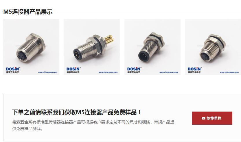 德索五金電子,是專業的M5連接器生產廠家,本公司生產的M5連接器性能良好,通過了ISO認證,用戶朋友可以放心采購這些M5連接器。如果您有特殊的M5連接器采購需求,我們也接受您的定制,為您加急打樣。