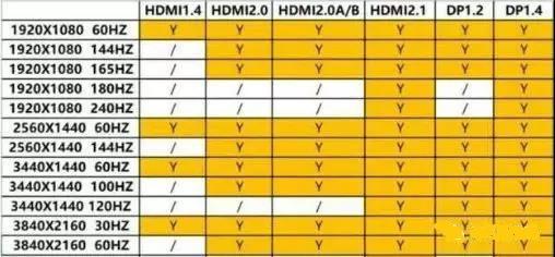 經過時間的累計和發展,DP和HDMI接口沒有任何改變,但協議卻在不斷的演化,不同協議版本的接口傳輸能力的差異是巨大的。