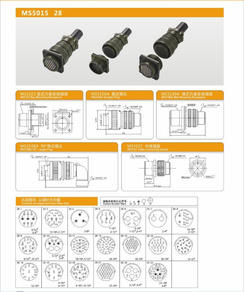 5015系列 MS3106A28-20S 14芯航空插頭連接器工防防水