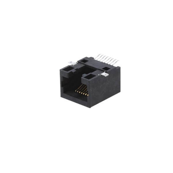 標簽:RJ45連接器,母座,PCB板,8P8C,1*1,單層,單口,沉板貼片式,非屏蔽,不帶彈片,不帶燈,不帶濾波器,全塑殼,黑色