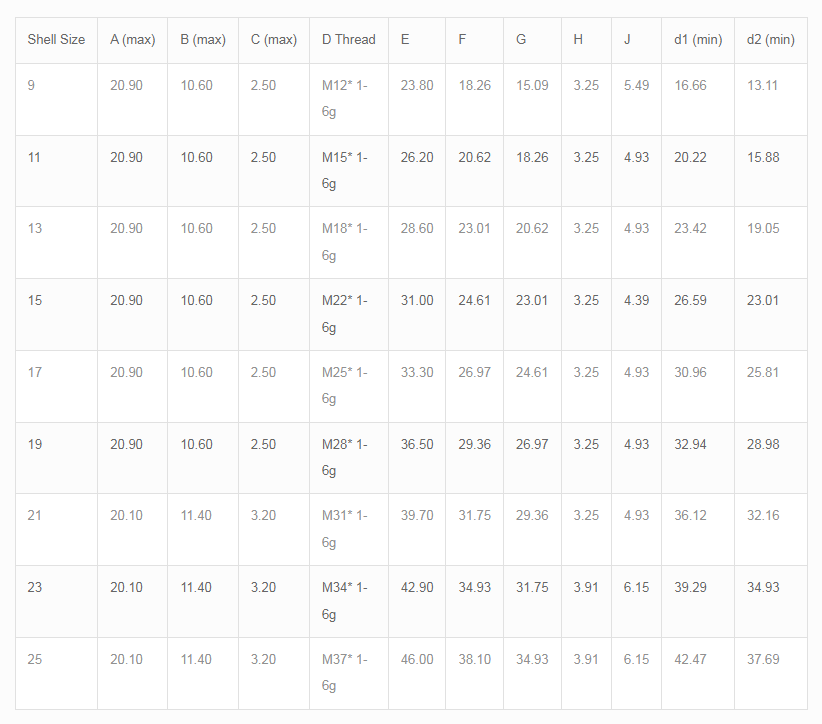 | 外殼尺寸 | A / B / C / D / E / F / G / H / J |