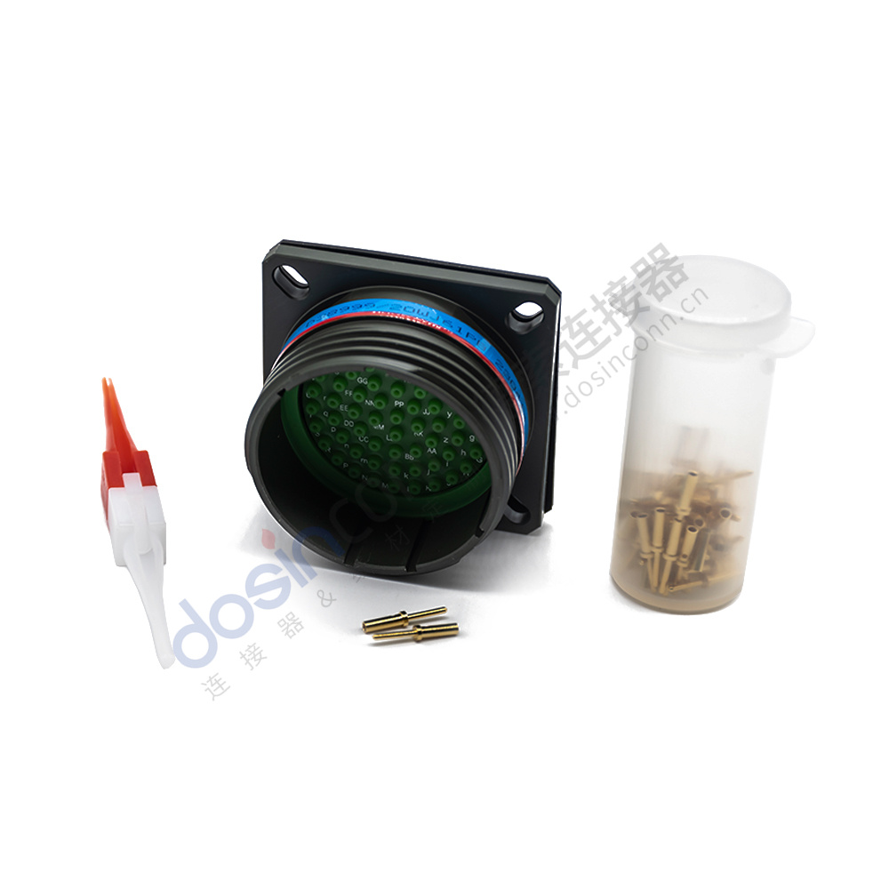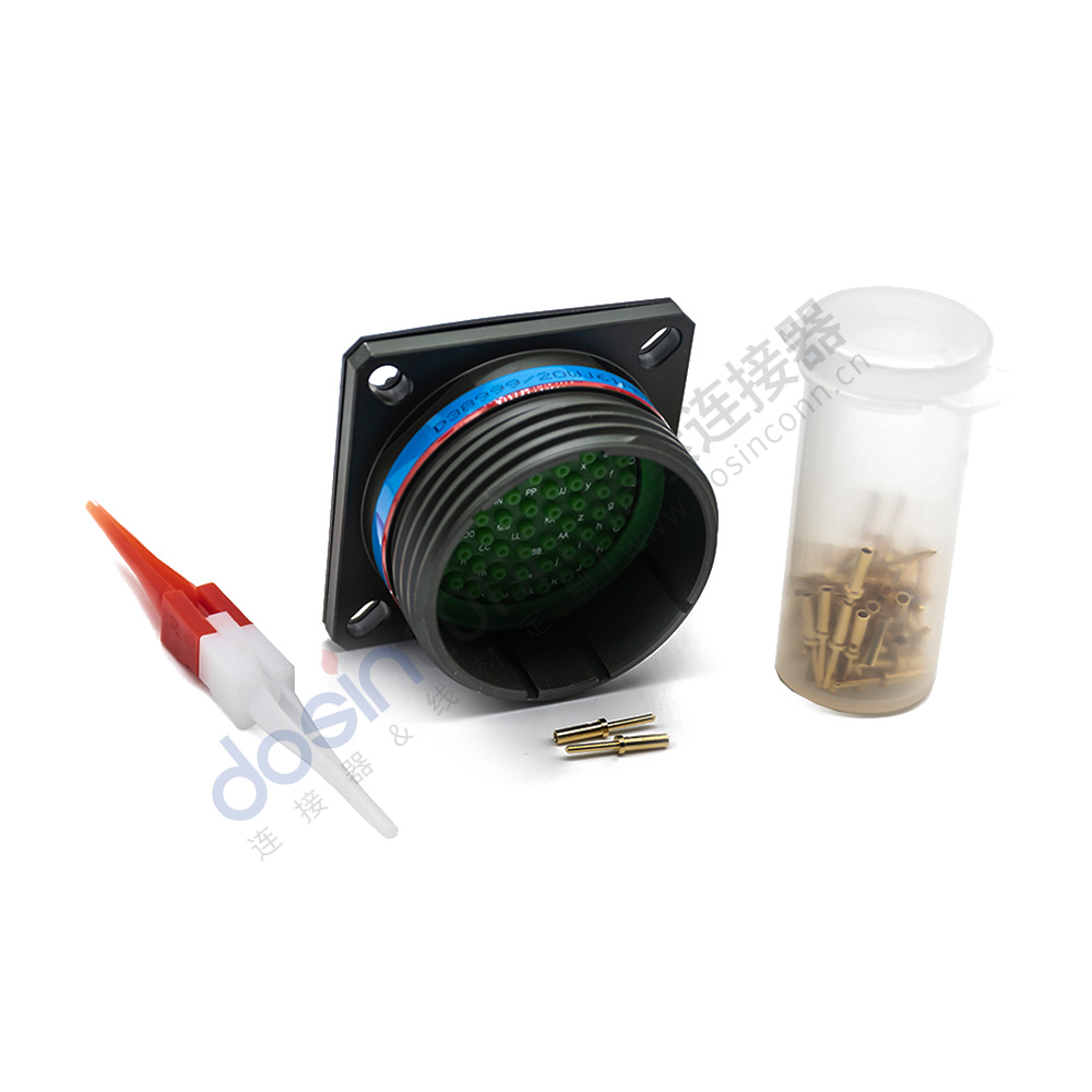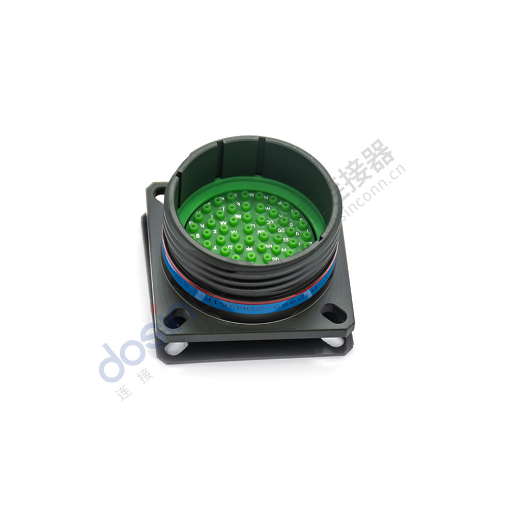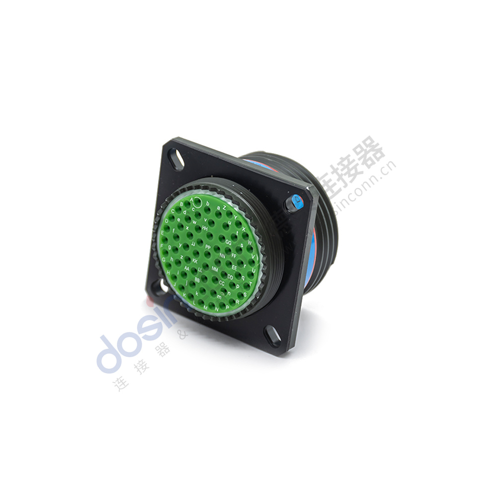 D38999/20WJ61PB 61芯方形法蘭帶針公插座B鍵位軍綠色