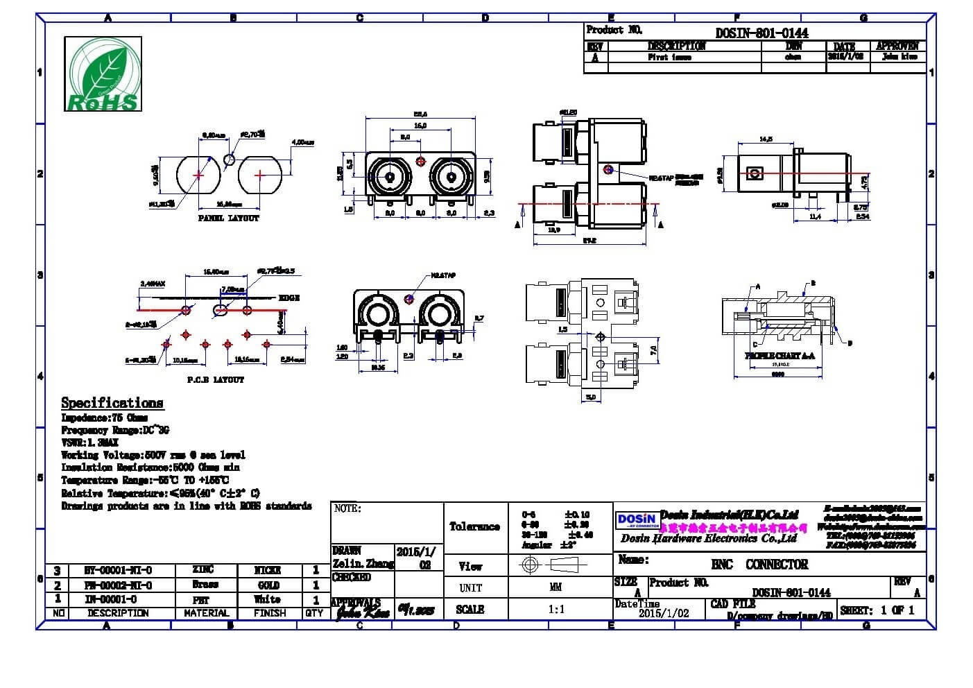 標簽:?母頭, PCB板, 雙頭, BNC, 射頻同軸連接器