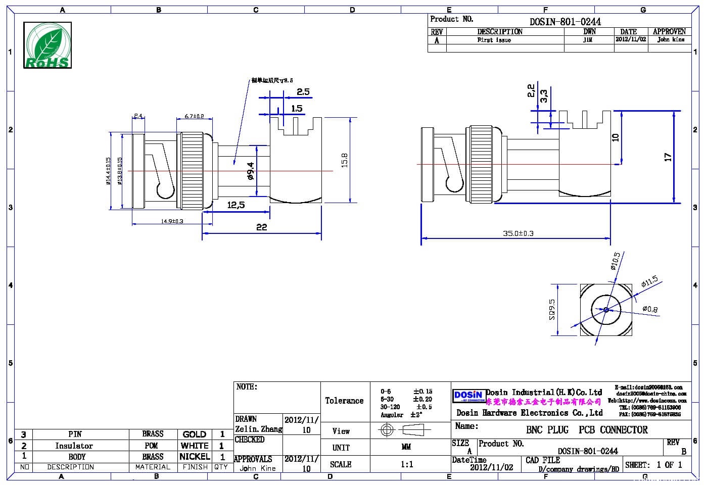 標簽:?公頭, PCB板, 彎插, BNC, 射頻同軸連接器