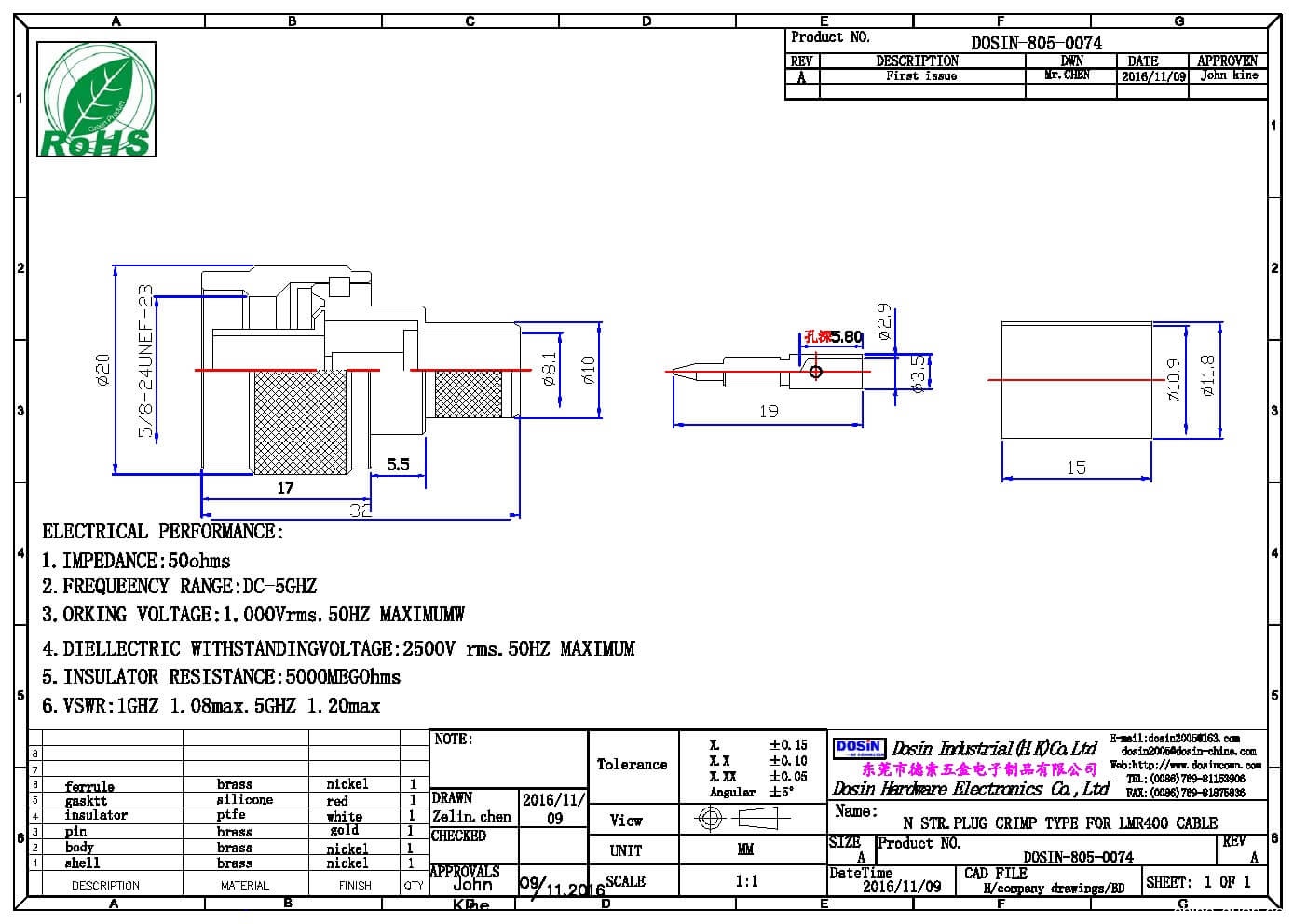 標簽:?N型連接器, 直式,壓接,同軸線纜,公頭