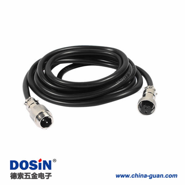 2芯航空頭連接線GX12圓形航空連接器公母對接現場組裝插頭電纜線1M