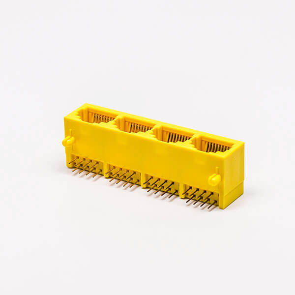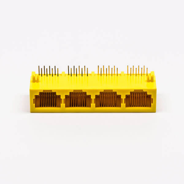 料號:DOSIN-819-0510 標簽:RJ45,母頭,PCB板,8P,四口,彎式,不帶屏蔽,不帶燈,黃色,全塑