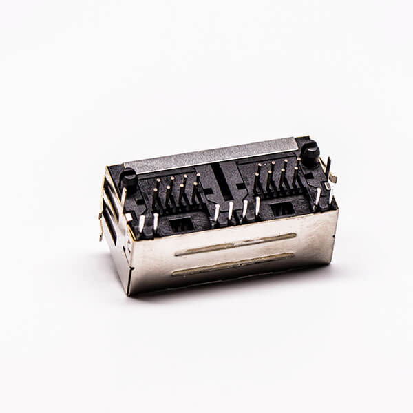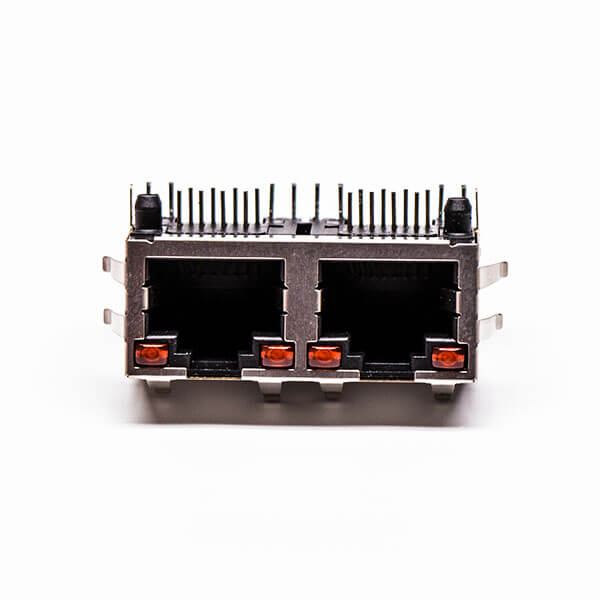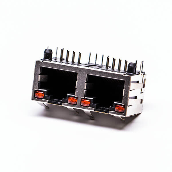 標簽:RJ45,母座,PCB板,8P,雙口,彎式,帶屏蔽,帶燈,帶彈片,全塑,銅殼