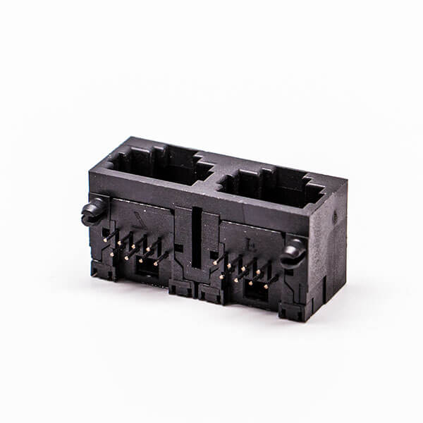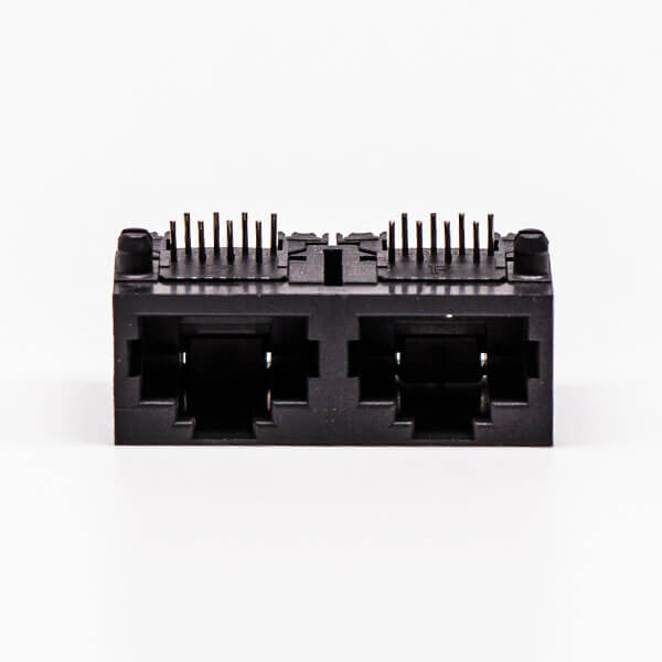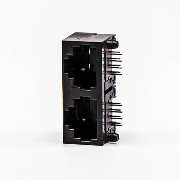 料號:DOSIN-819-0521 標簽:RJ45,母座,PCB板,8P,雙口,彎式,不帶屏蔽,不帶燈,黑色,全塑