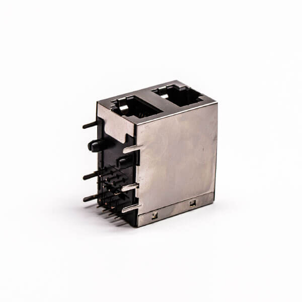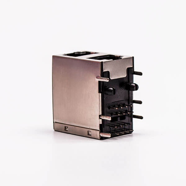 料號:DOSIN-819-0534 標簽:RJ45,母座,PCB板,8P,雙層,彎式,帶屏蔽,不帶燈,不帶彈片,銅殼