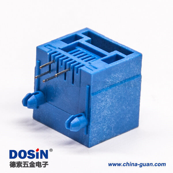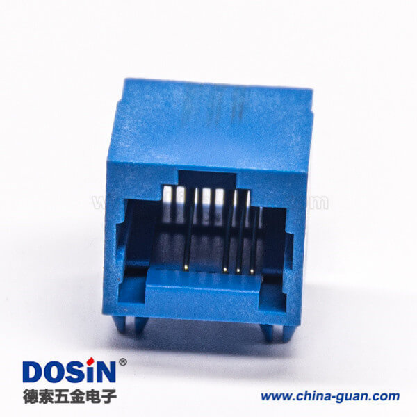 rj11母座藍(lán)色全塑模塊化插座6P4C插PCB板