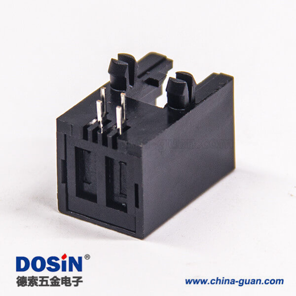 rj11 4p4c封裝模塊化網口連接器90度彎角全塑帶定位柱穿孔式