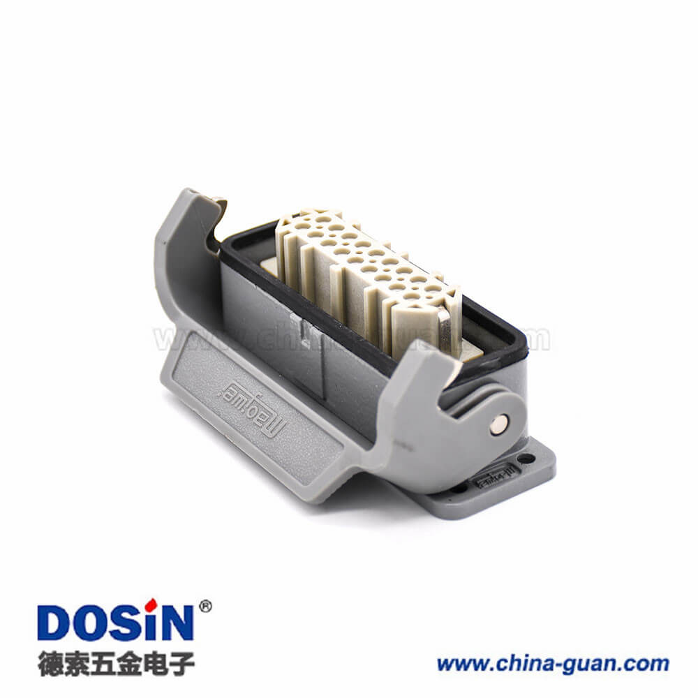 標簽:H16A重載連接器,開孔安裝,高結構斜出口,塑料鐵扣,兩耳,單扣,公母對接,18芯,鍍銀,PG21