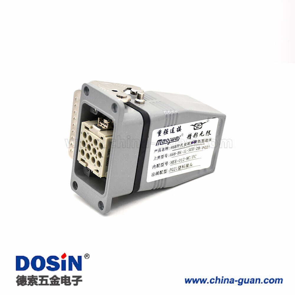 標簽:H6B,重載連接器,開孔安裝,2耳,單扣,高結構斜出口,鐵扣,不帶針公頭,12芯,公母對接,PG21