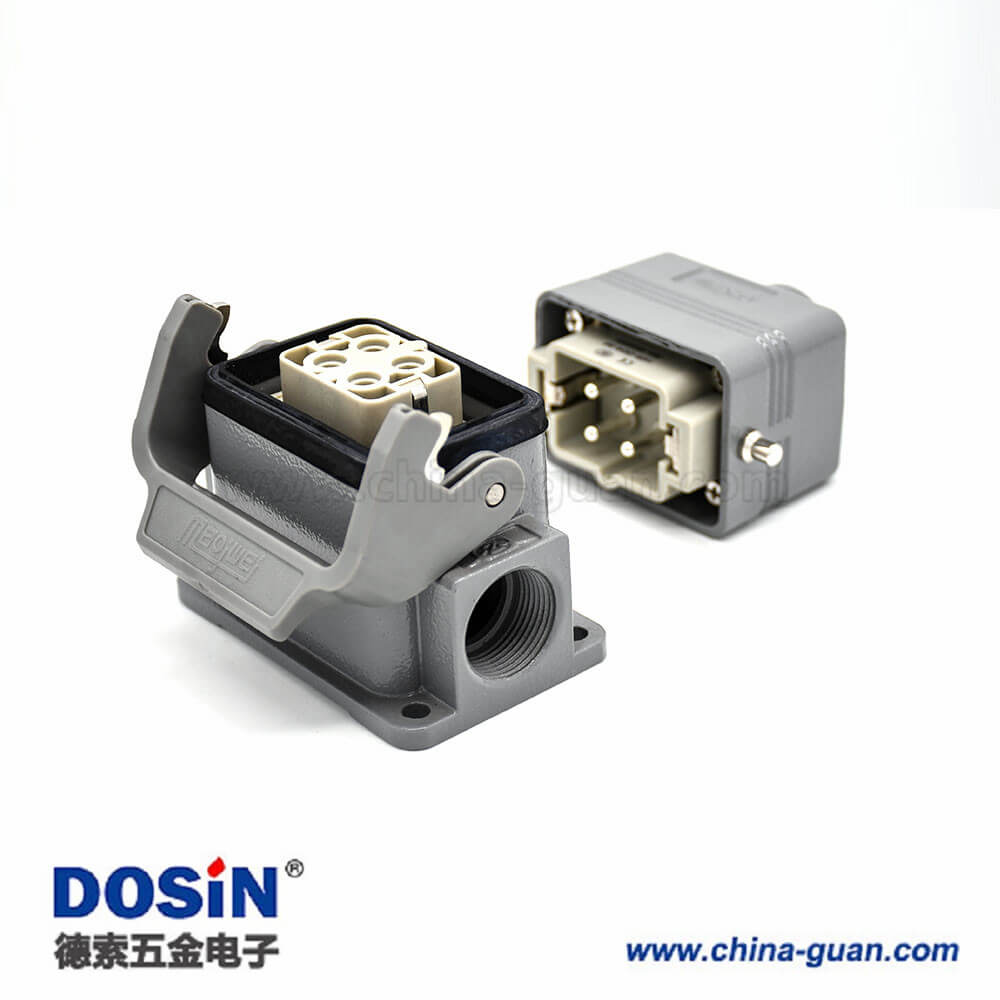 標(biāo)簽:H6B,重載連接器,表面安裝,2耳,單扣,頂出口,塑料鐵扣,4芯,鍍銀,公母對接,PG16