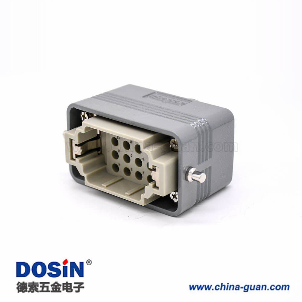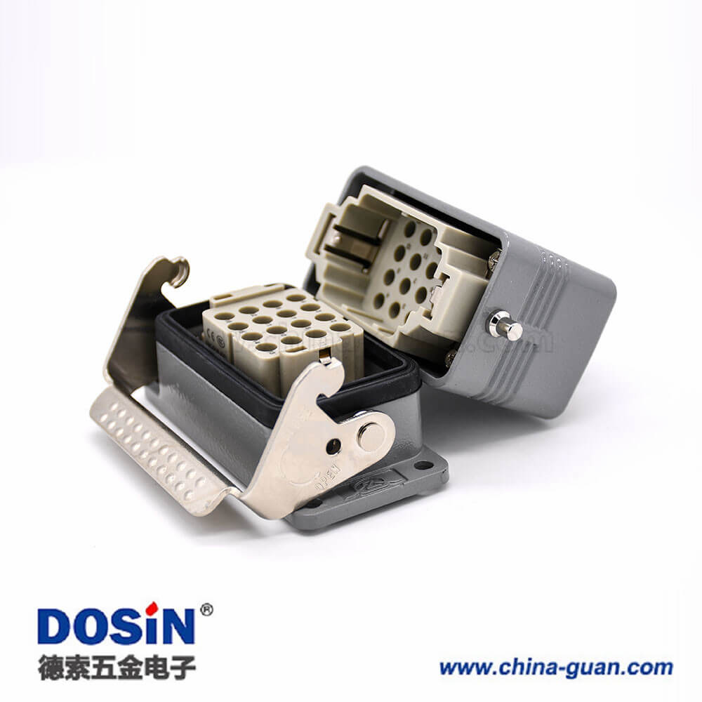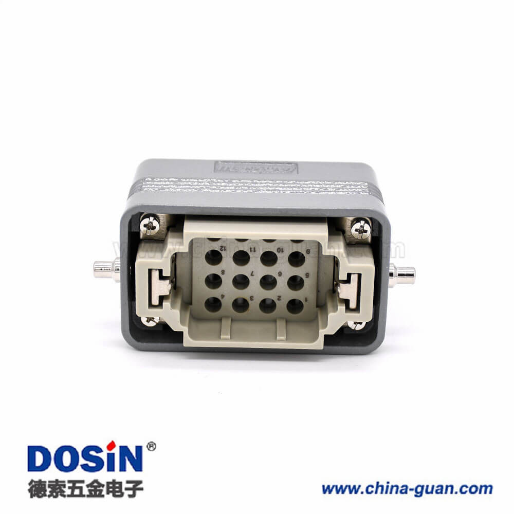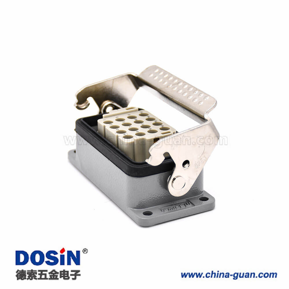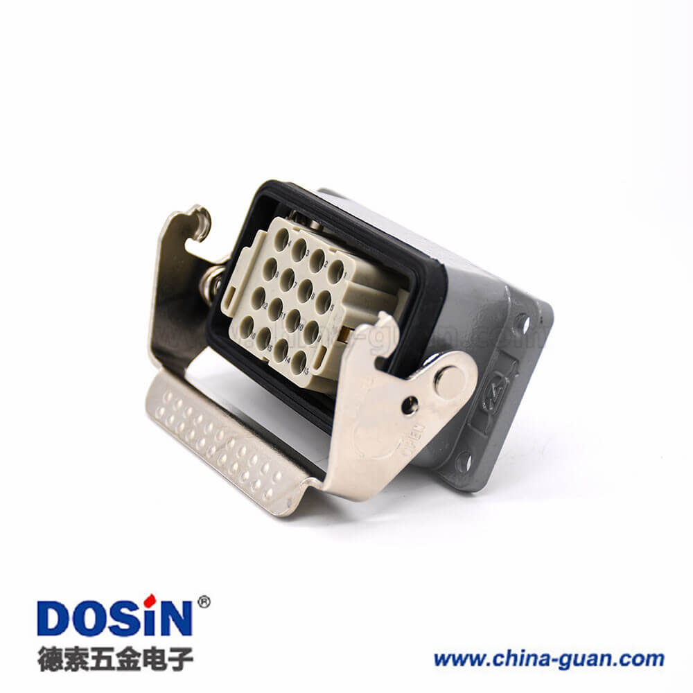 矩形重載連接器H10B不帶針公頭16芯螺紋PG16公母對接頂出口鐵扣2耳開孔安裝鋁合金外殼