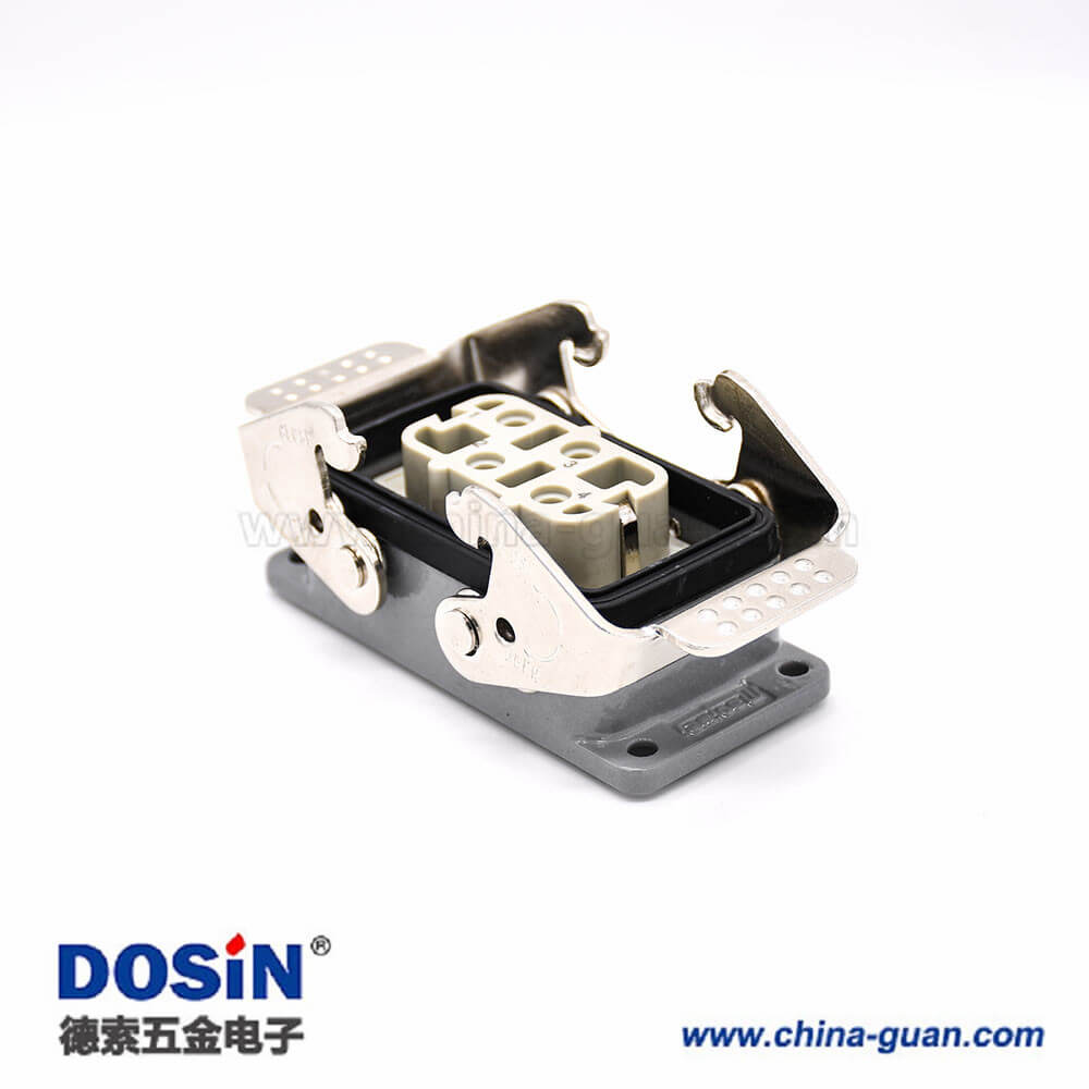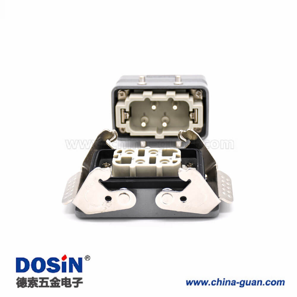 標簽:H10B,重載連接器,開孔安裝,4耳,兩扣,頂出口,鐵扣,4芯,鍍銀,公母對接,M25