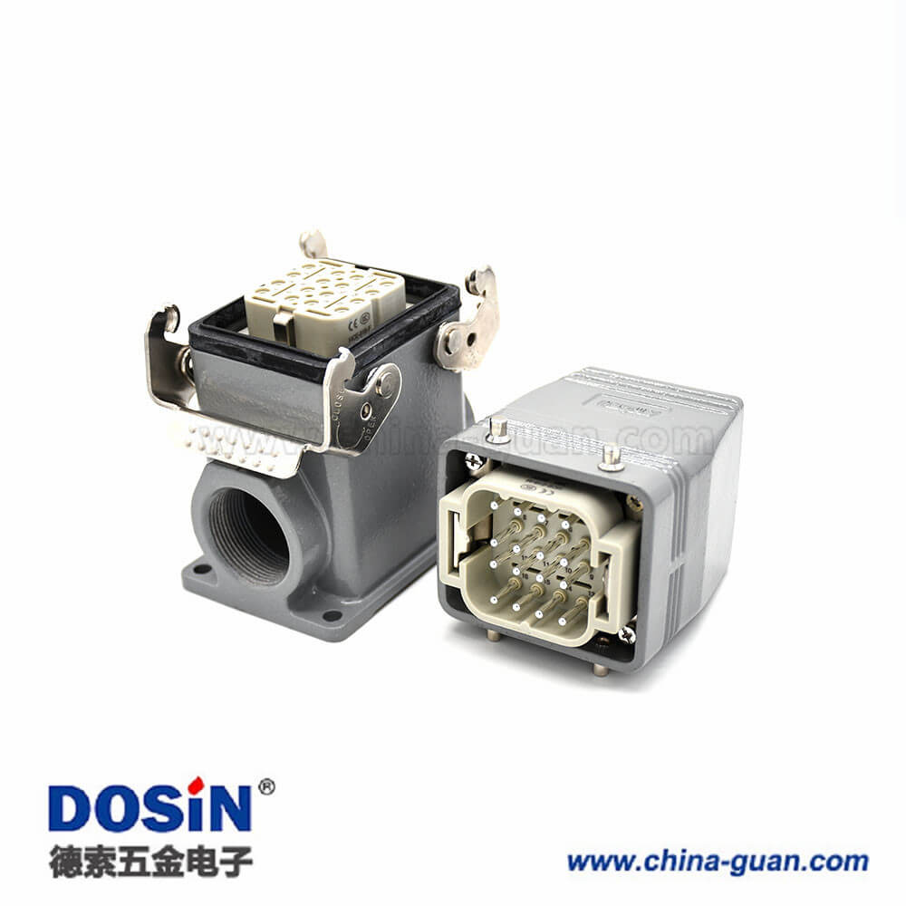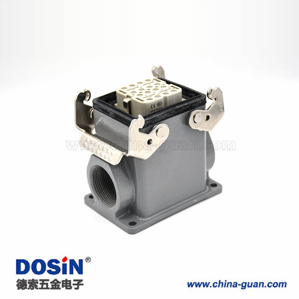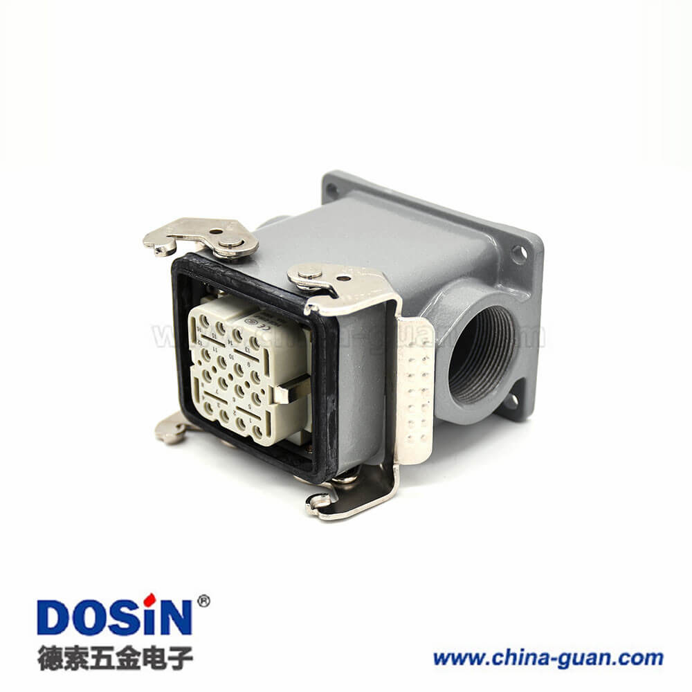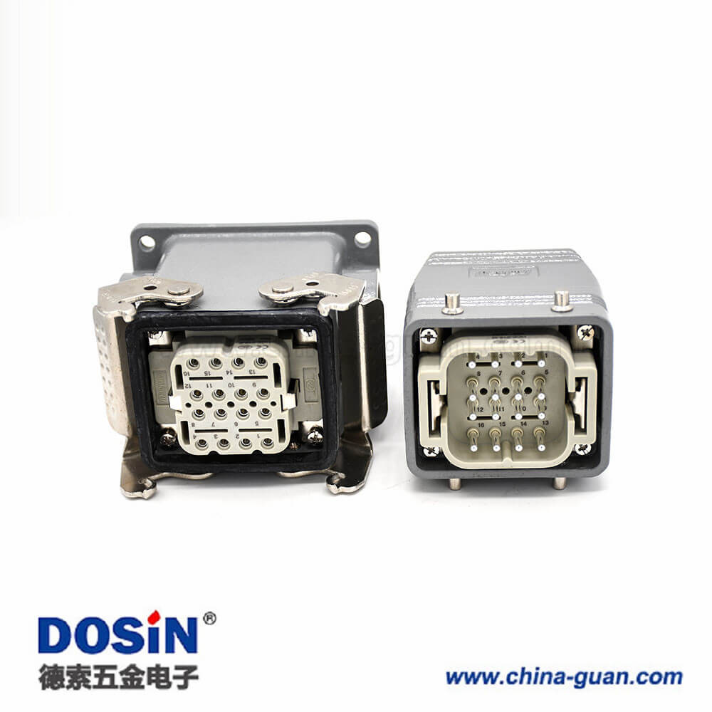 標簽:H6T,重載連接器,加高型表面安裝,4耳,兩扣,高結構頂出口,鐵扣,16芯,鍍銀,公母對接,M32