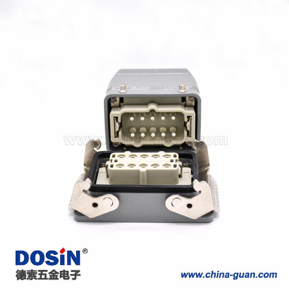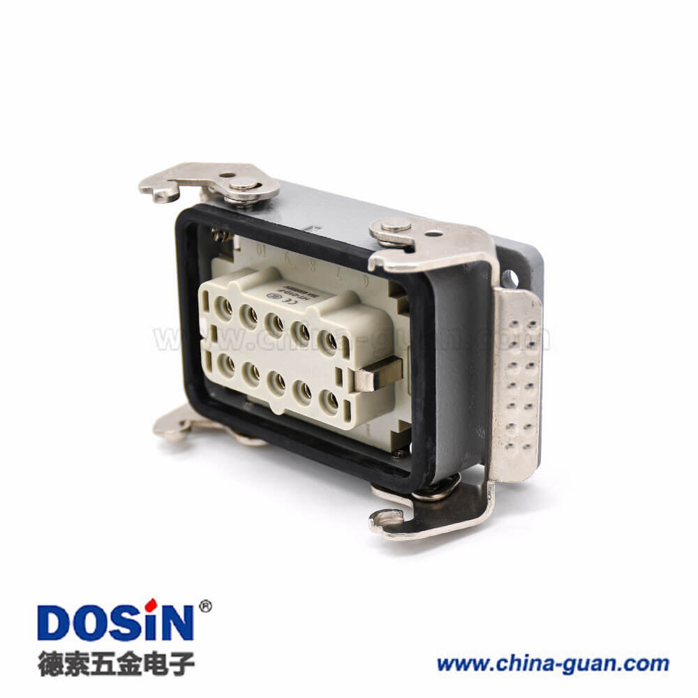 標簽:H10T重載連接器,開孔安裝,高結構斜出口,鐵扣,四耳,兩扣,公母對接,10芯,鍍銀,PG29
