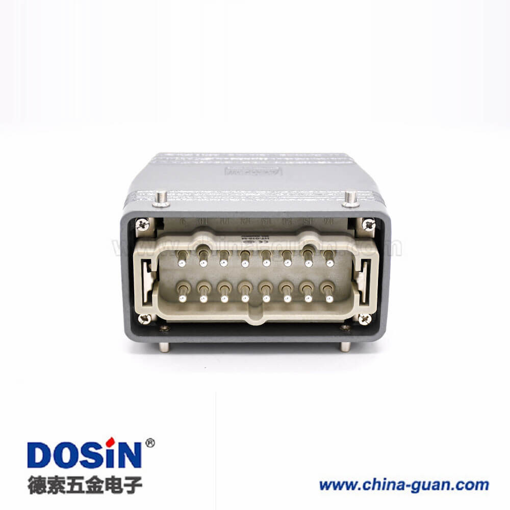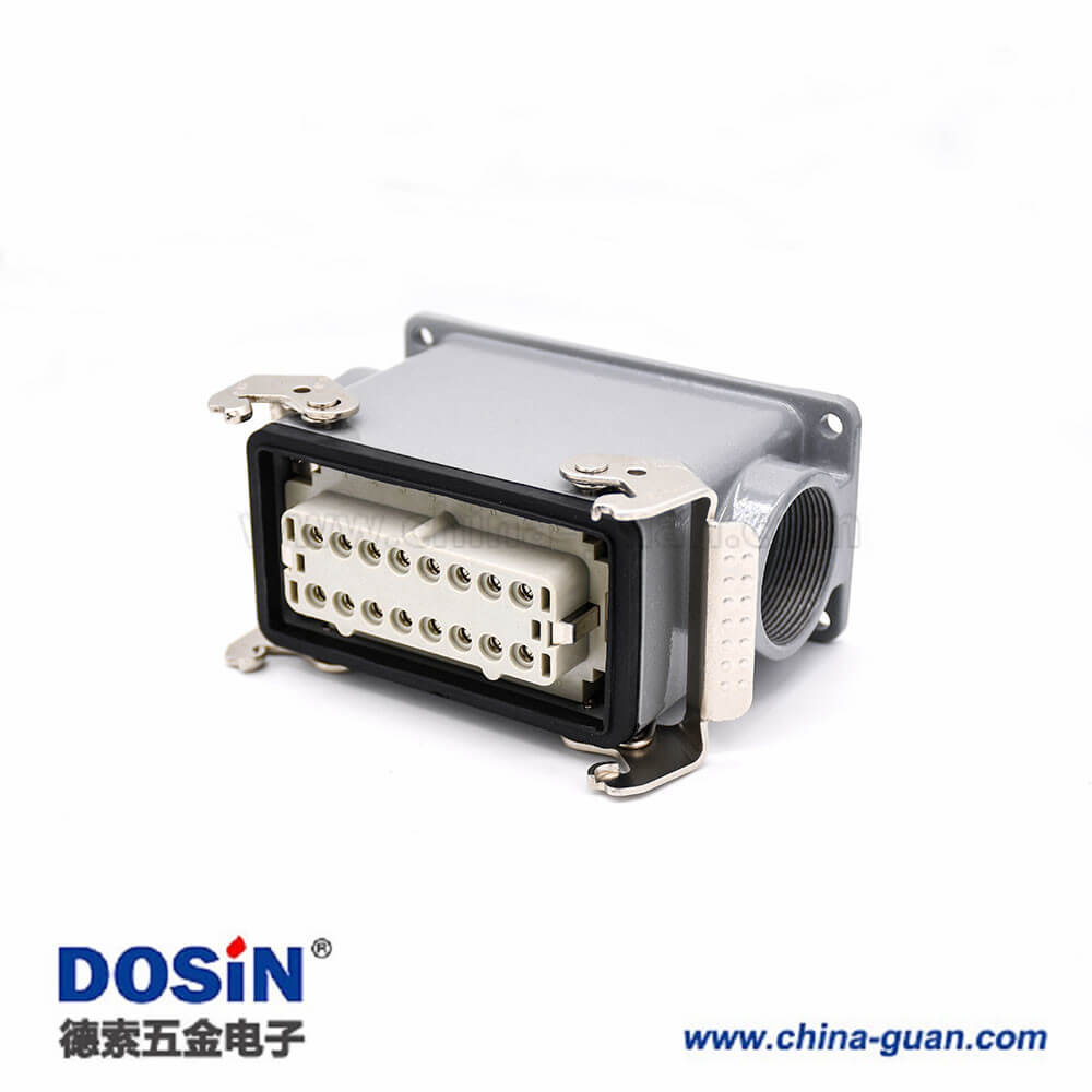 標簽:重載連接器,上殼體&底殼,加高型表面安裝,4耳,2扣,高結構頂出口,鐵扣,公母對接,16芯,PG29,H16T外殼