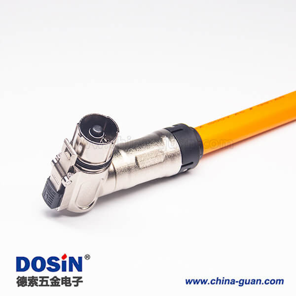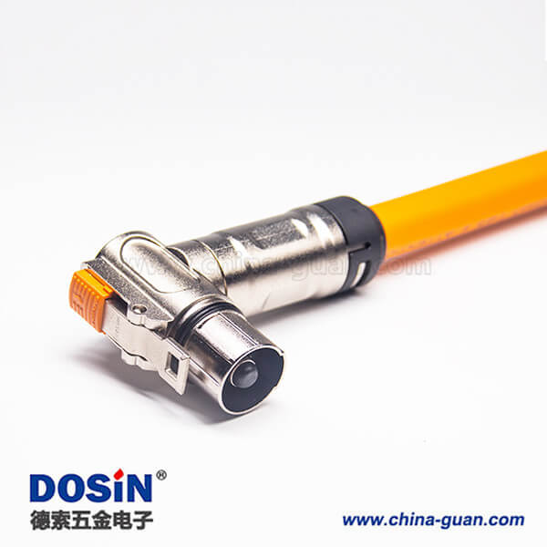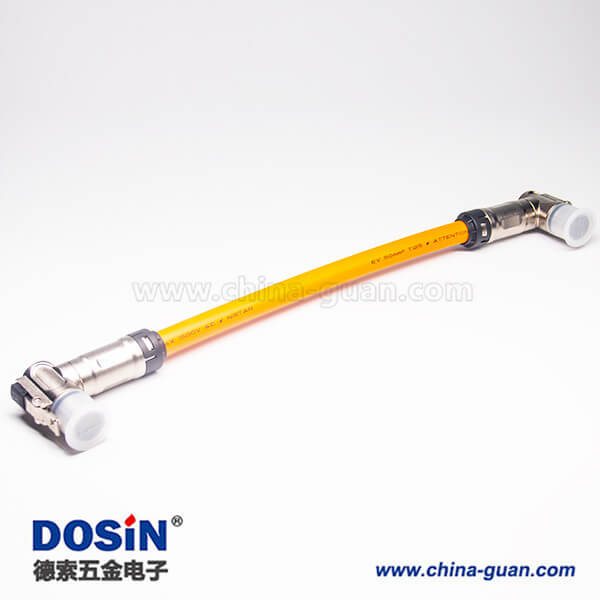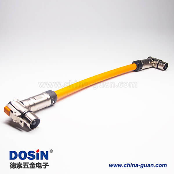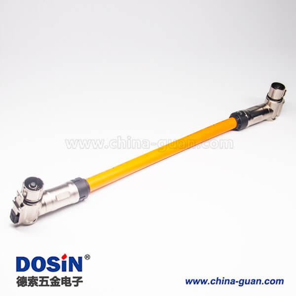 高壓插頭90°單芯金屬互鎖帶屏蔽直式轉(zhuǎn)接線25CM
