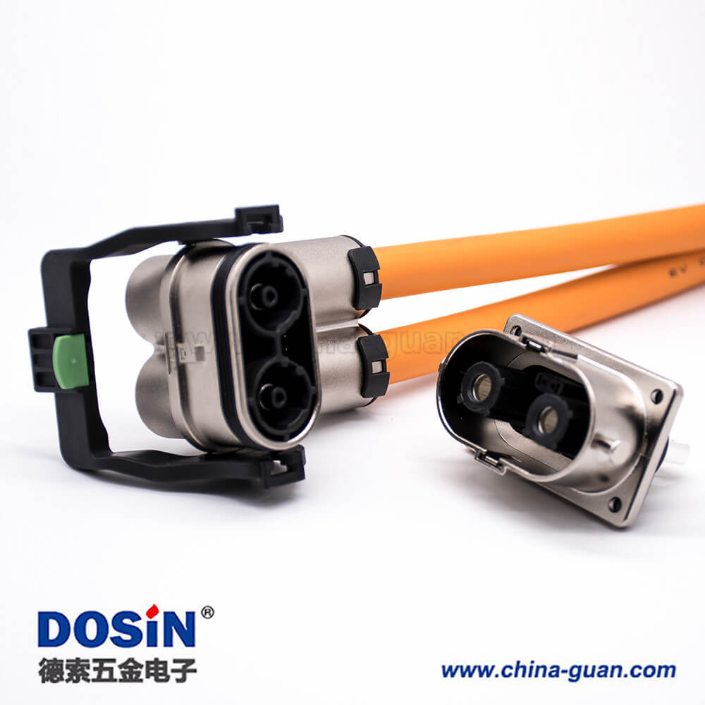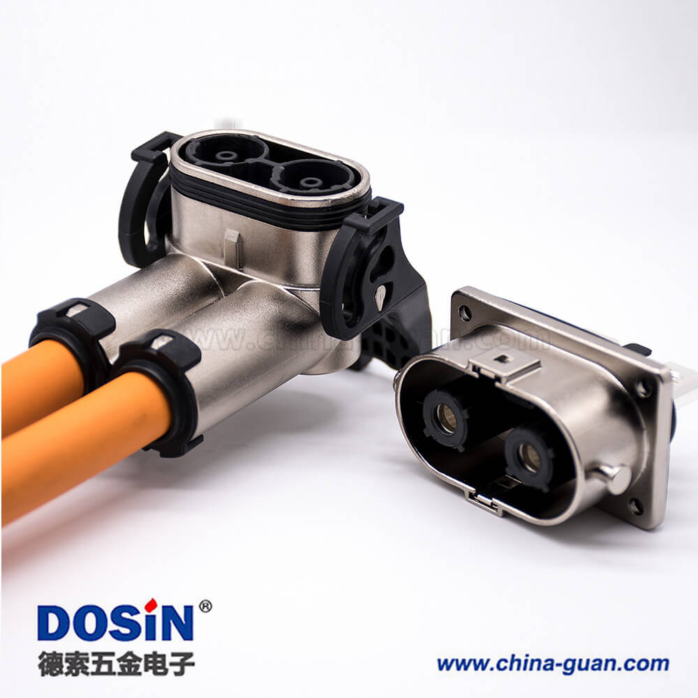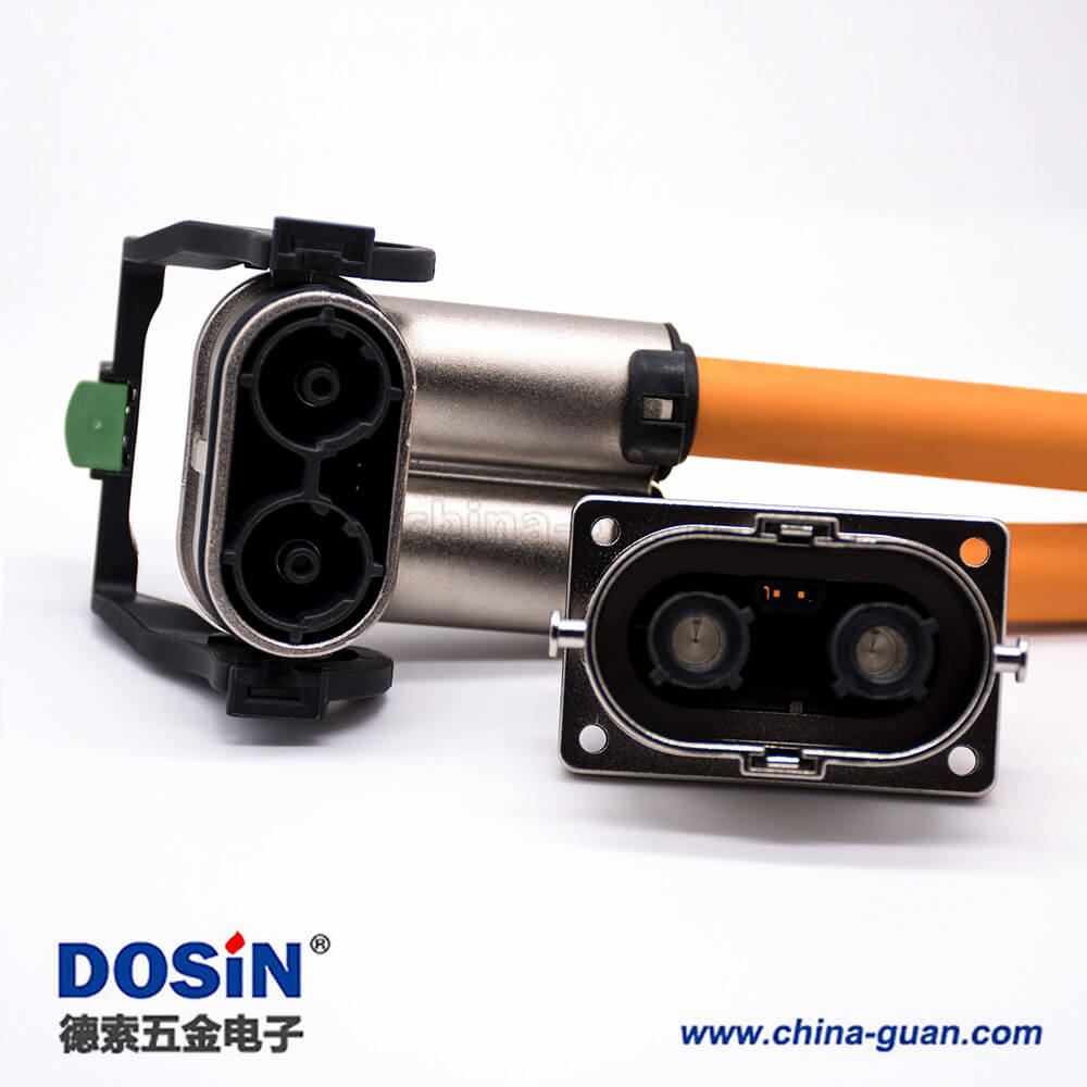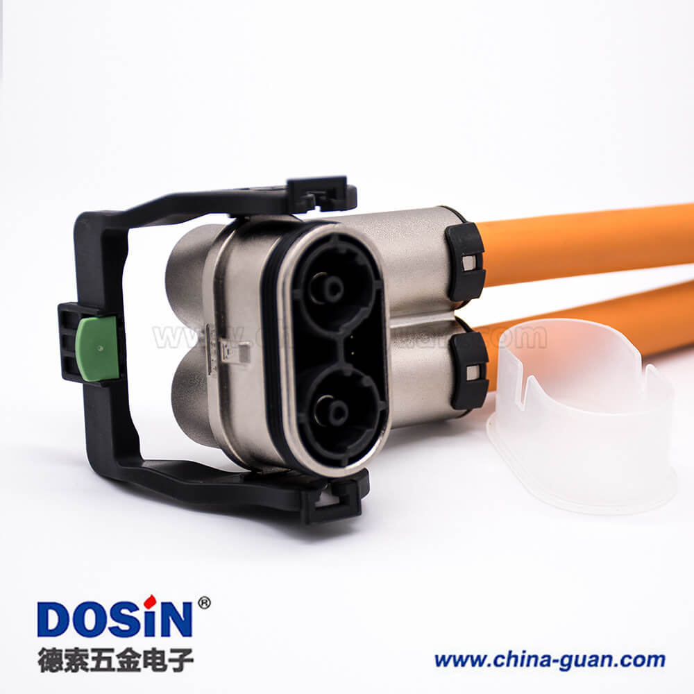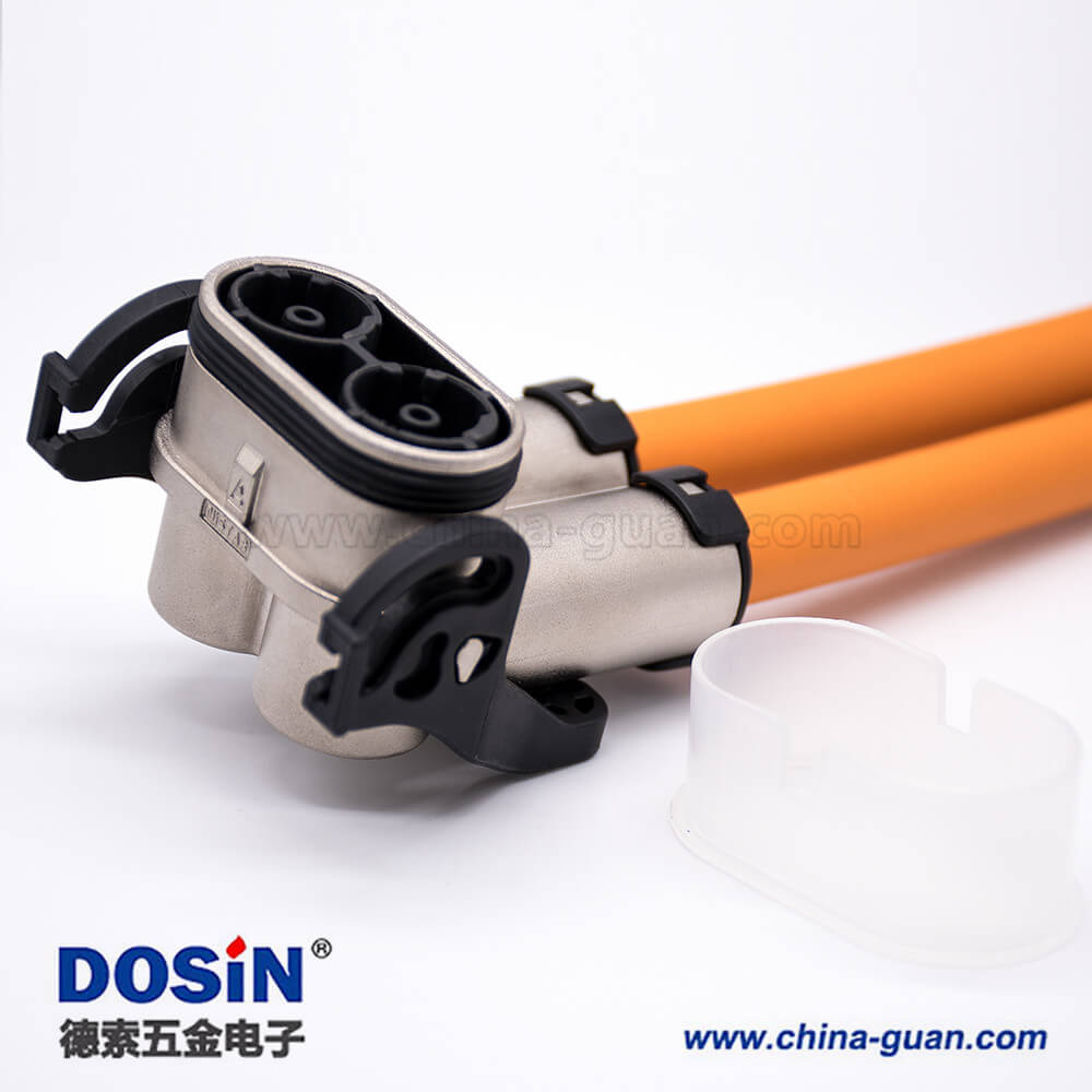 高壓互鎖插頭125A彎式2芯金屬外殼接線15CM連接線