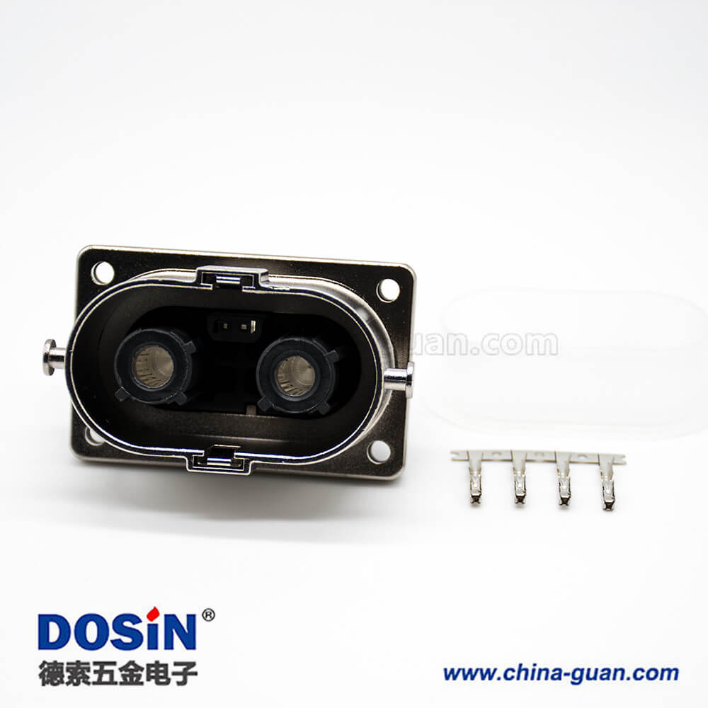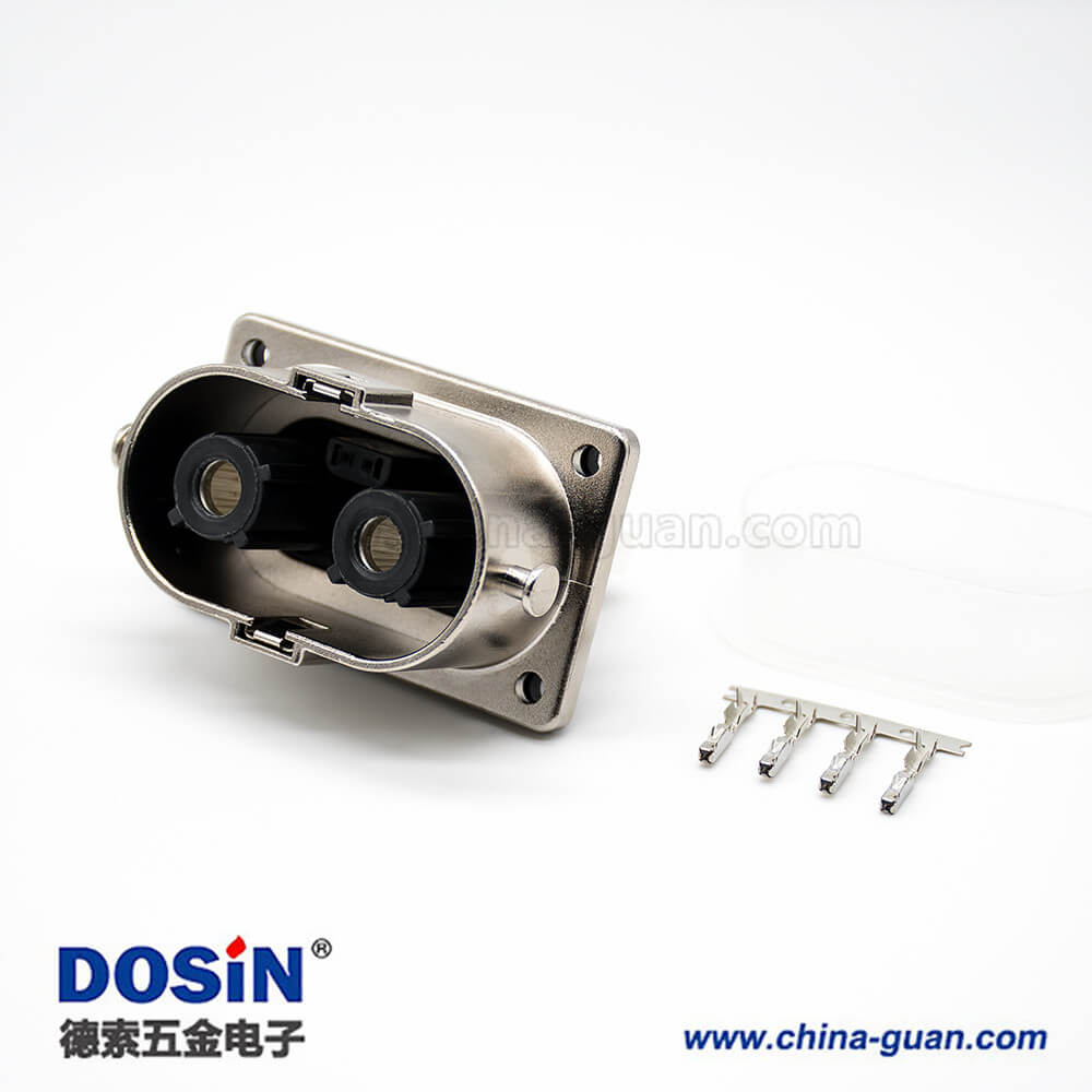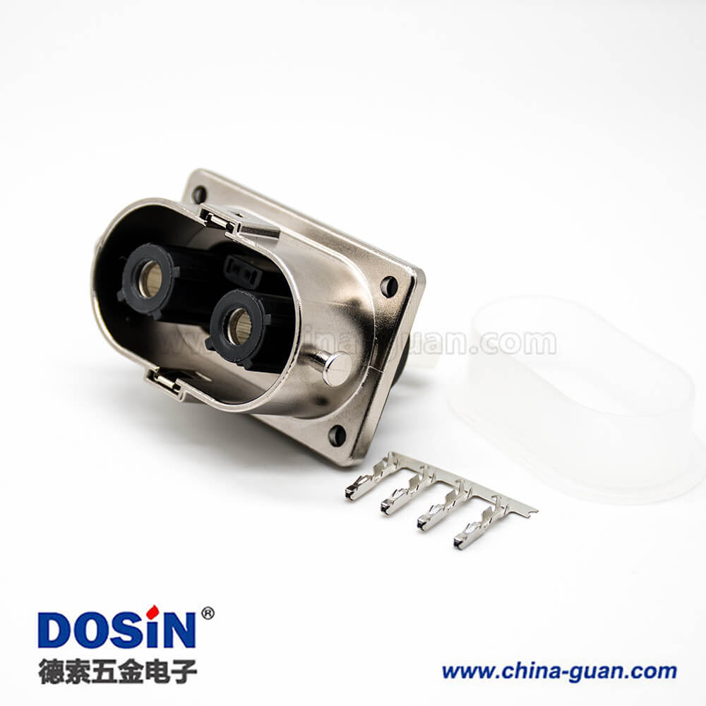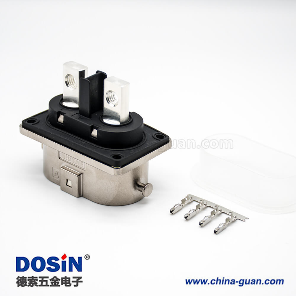 高壓互鎖連接器2芯直式插座面板安裝4孔法蘭125A金屬外殼