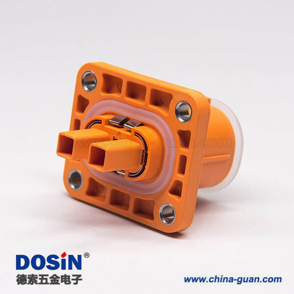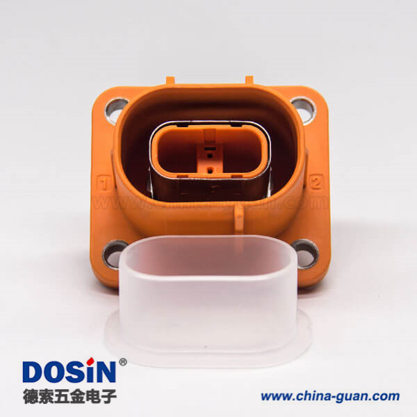 電動(dòng)汽車高壓連接器塑料插座2芯直式電流150A高壓互鎖