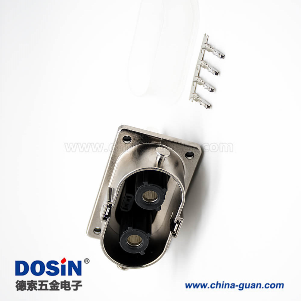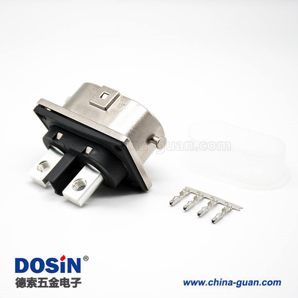 高壓互鎖連接器2芯直式插座面板安裝4孔法蘭125A金屬外殼