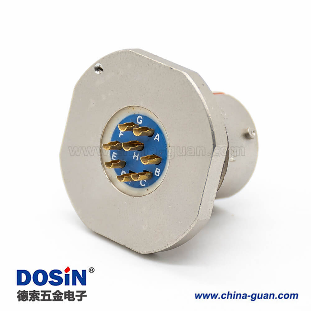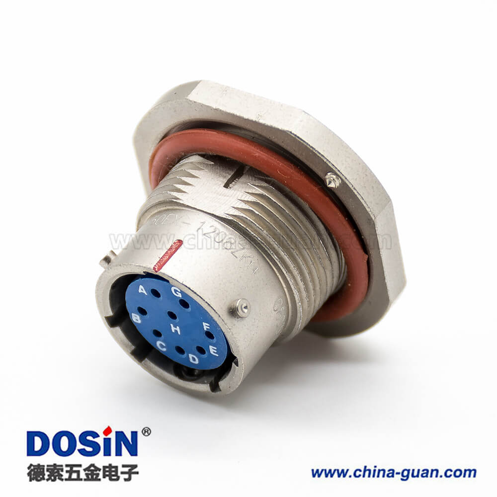 標簽:Y50EX,12殼體號,插座,8芯,母頭,直式,卡口連接,面板安裝,前鎖穿墻,焊杯,鋁合金,鍍鎳,防水