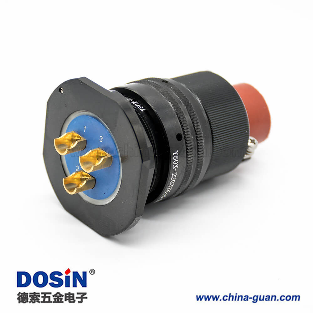 Y50X連接器22殼體號卡口連接插頭&插座3芯公母對接面板安裝焊杯直式黑色陽極化