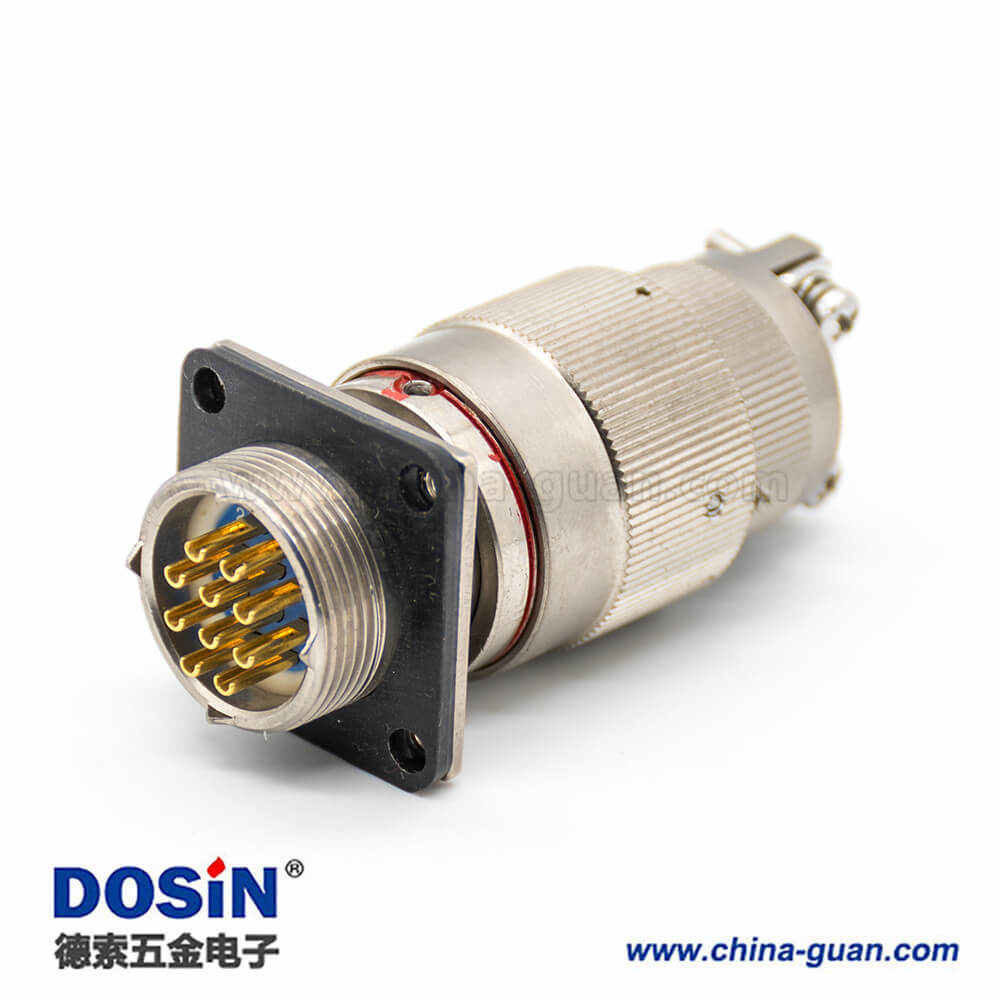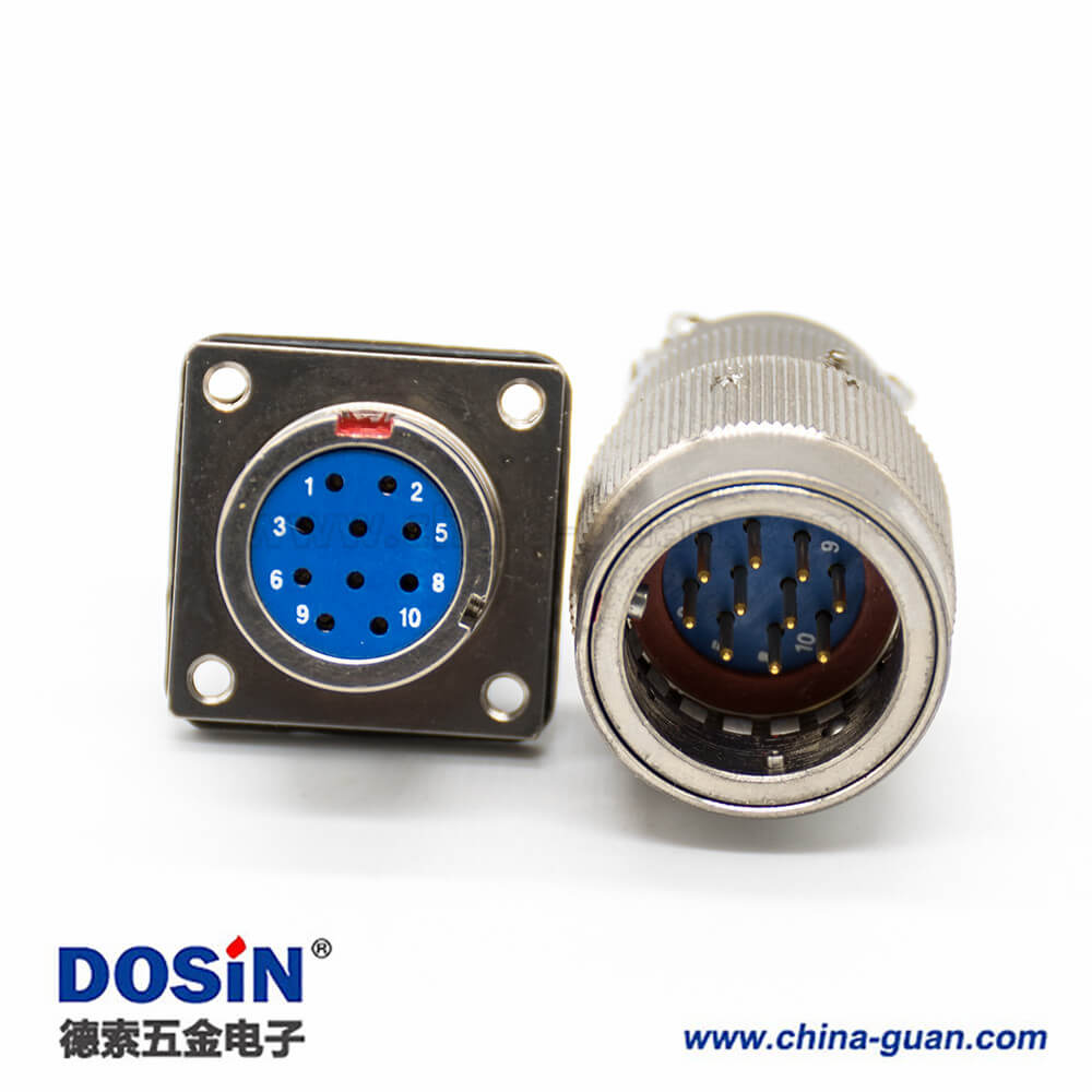 10芯連接器4孔法蘭焊杯插頭&插座卡口連接Y27G公母對接電纜式直式工防黃銅