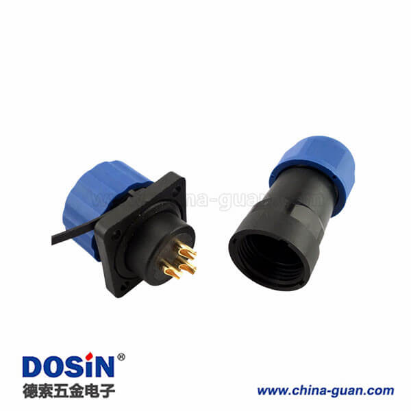 料號:DOSIN-831-0016 標簽:SP17系列,直角,常規款,4孔法蘭插座和插頭,焊接中心針,3芯