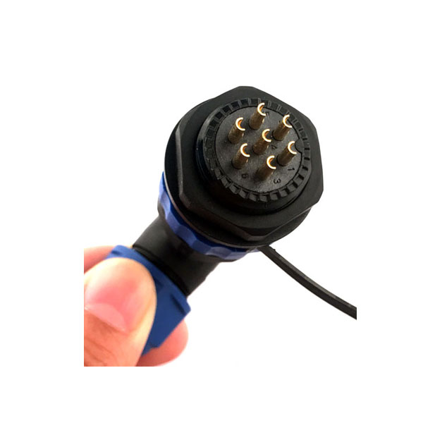 料號:DOSIN-835-0014 標簽:SP29系列,彎式,常規款,后螺母插座和彎式插頭,焊接中心針,9芯