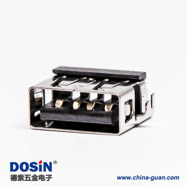 標簽:USB2.0,母頭,Type A,彎式,DIP,兩腳,黑色膠芯,沉板