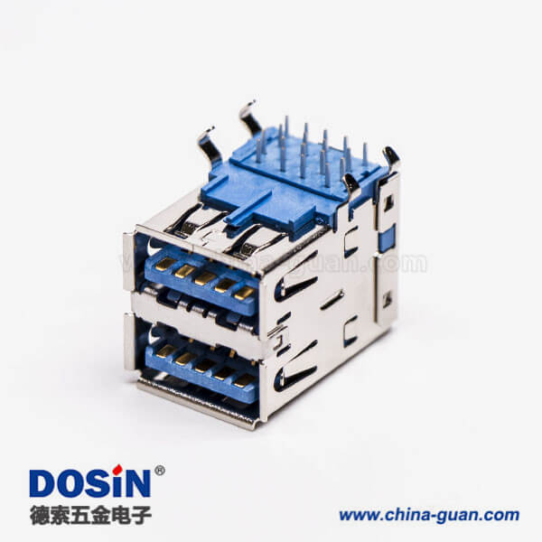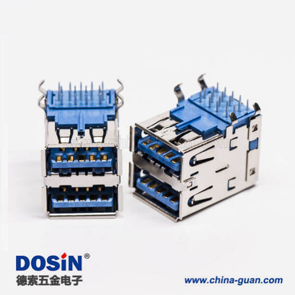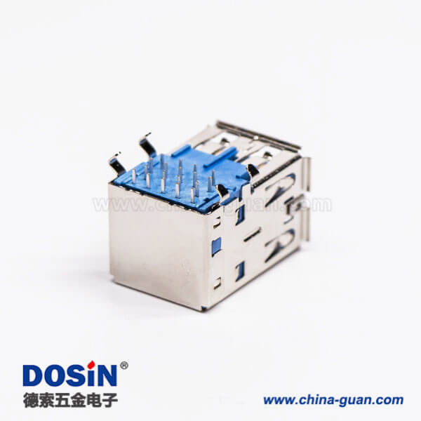 標(biāo)簽:USB3.0,Type A,雙端口,母頭,彎式,插板,DIP,藍色膠芯,PCB板