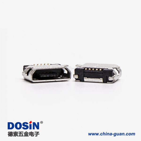 micro usb 接口B型母頭SMT全貼板5針平口連接器