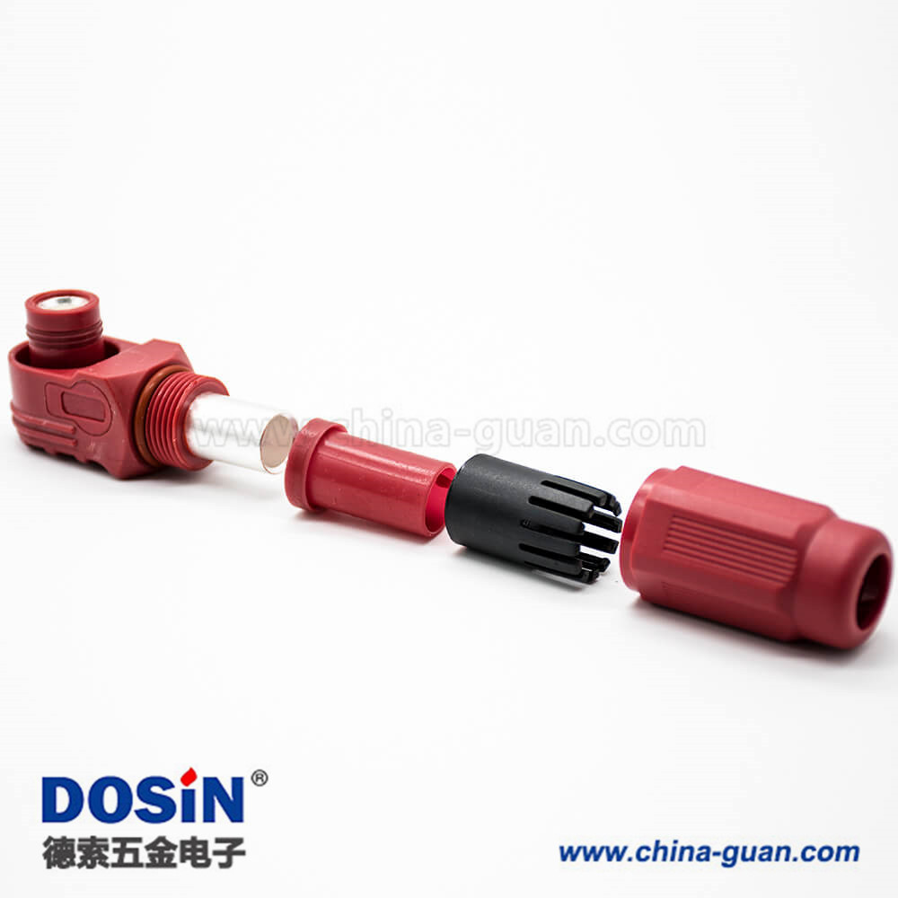 單芯大電流連接器IP67彎式插頭12mm單芯紅色塑料350A接線