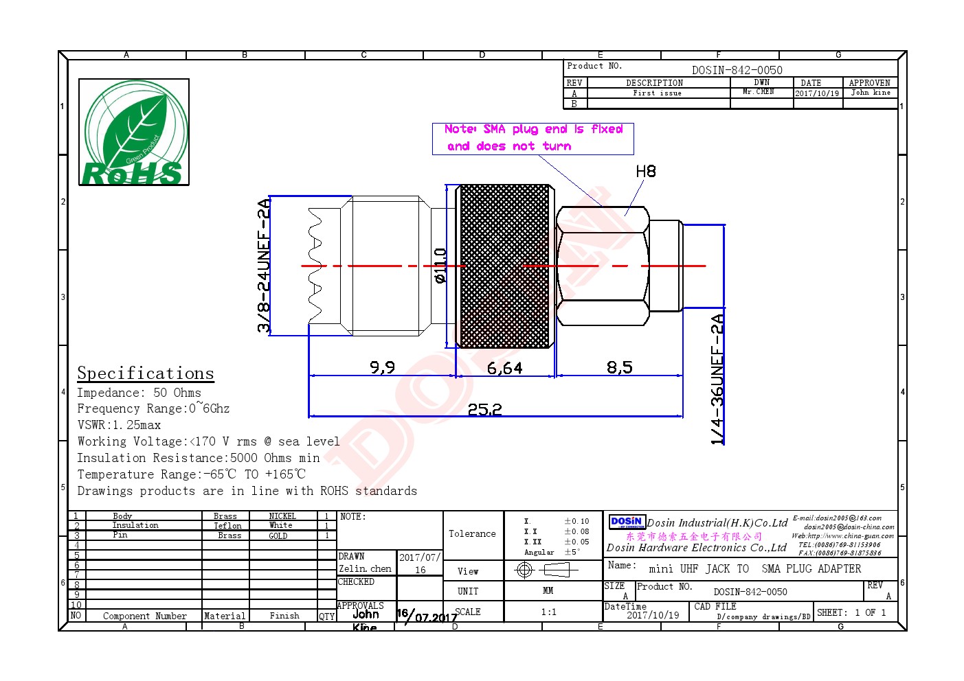 | 耐環境性 | 除非特殊標注,所有UHF系列連接器均不具有耐環境性能 |