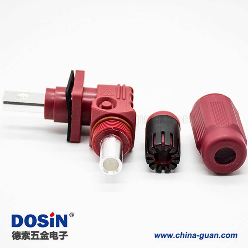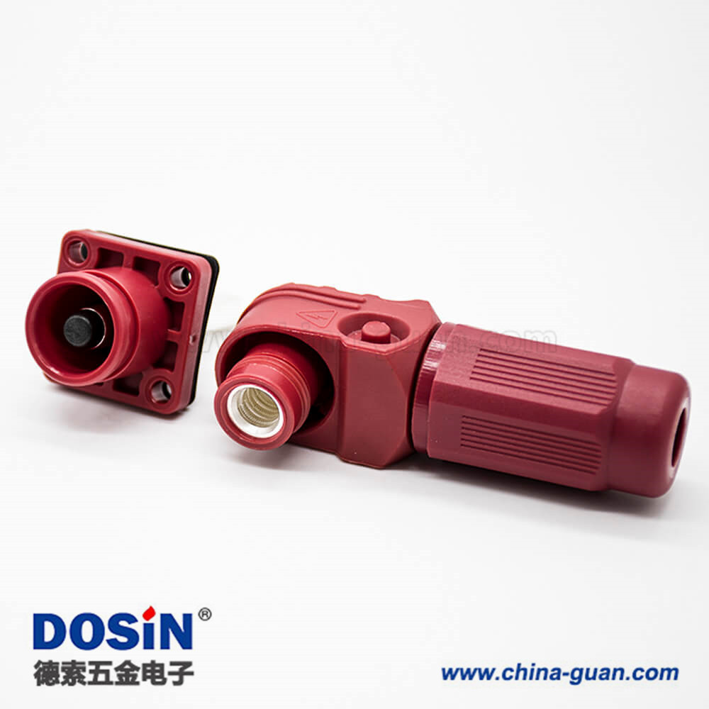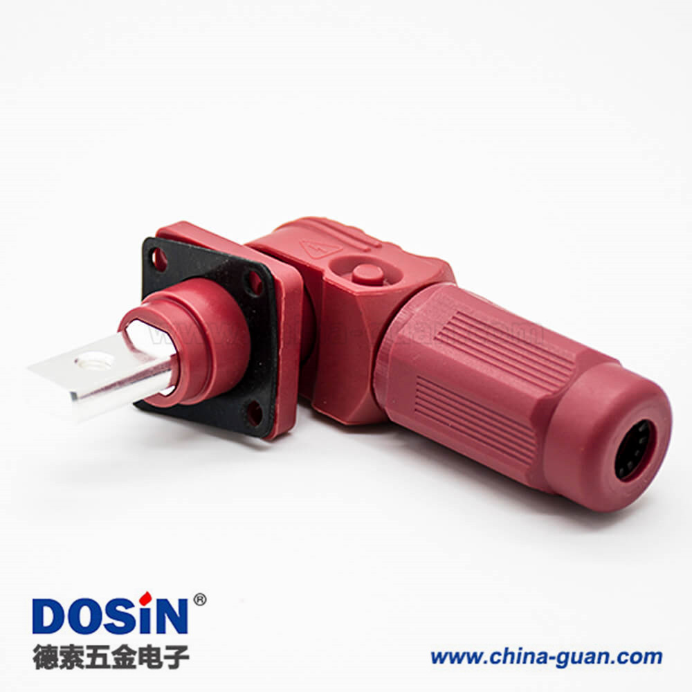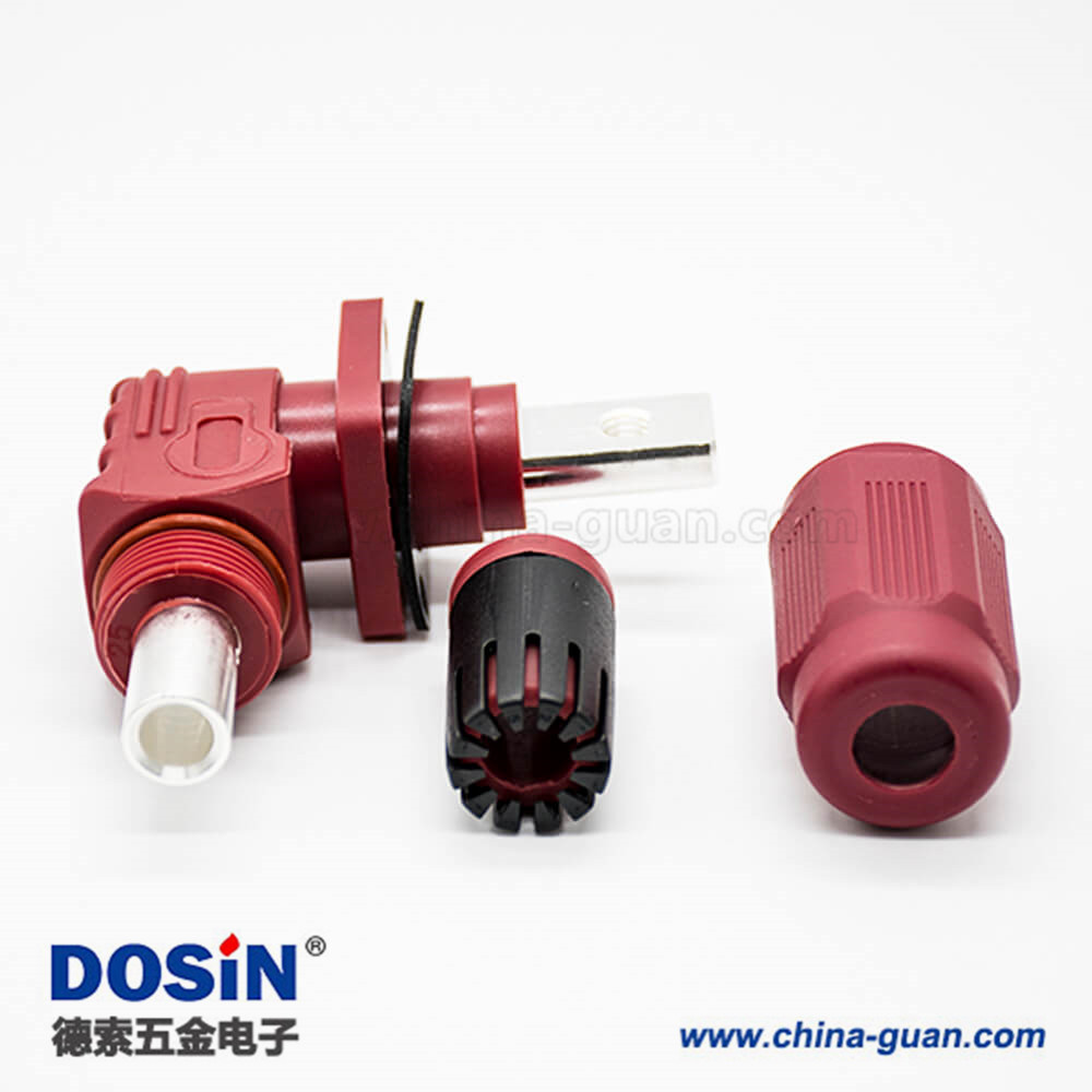 新能源電源儲能連接器單芯14mm公母插座插頭直彎對接400A紅色塑料防水IP67銅牌連接
